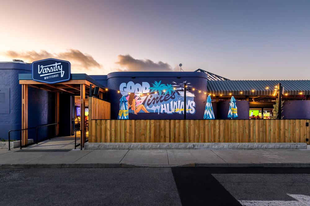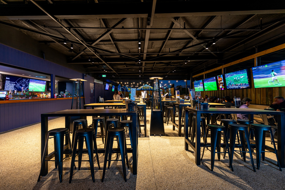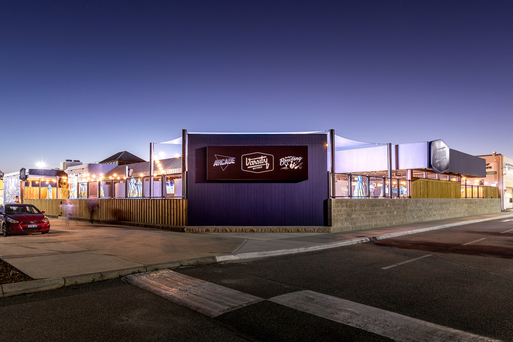 SBP Group delivered Varsity Whitfords as a multi-discipline hospitality and entertainment build. The scope covered a full bowling alley installation, an arcade fitout, a 35-metre bar, and a commercial kitchen built for high-capacity service. Construction included new amenities, exposed concrete flooring, and integrated landscaping with planter beds. Indoor and outdoor big screens were incorporated into the structure to support live events and crowd flow. The project brings together complex services, entertainment infrastructure, and detailed finishing to create a venue that performs under pressure and stays welcoming to guests.